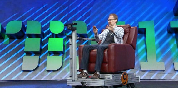 The chair itself is powered just by hand motions — even reclining — and feature omnidirectional wheels for smooth rolling. Right now it’s just a proof of concept, but Microsoft will release the chair’s source code with the SDK for further tomfoolery.