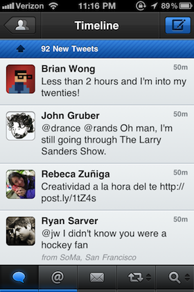 First of all, while apps like Echofon, Twitterrific, Seesmic, TweetDeck and other have their fans, Twitter for iPhone has been the undisputed king of Twitter iPhone clients since it was still known as Tweetie. In fact, that’s why Twitter bought it last year, along with developer Loren Brichter, and turned it into Twitter for iPhone (making it free in the process).
