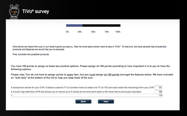TiVo is a fun company to watch mainly because they move at such a slow pace. Updates come on a seemingly yearly basis and new hardware launches with Hally’s Comet. It’s been just over a year since the TiVo Premiere launched and the highly-touted HD interface is still laggy and often reverts to the old SD scheme. So imagine my reaction when Dave Zatz posted an excerpt from a recent TiVo survey regarding interest in a 4-tuner DVR. Yeah, I’m not exactly expecting such a model before the end of the decade.
