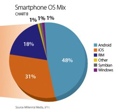 Globally, iOS impressions grew 29 percent month-over-month compared to 23 percent growth for Android impressions and 14 percent growth for RIM. Symbian impressions grew 4 percent month-over-month.