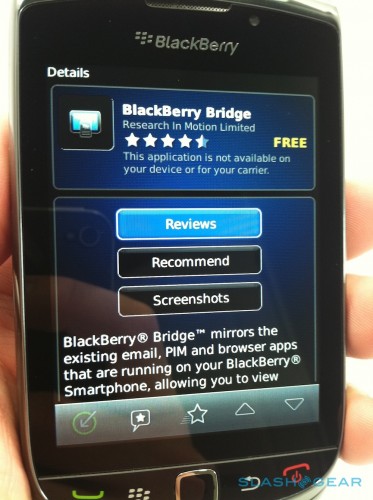 Slashgear tried to download the app today and found it blocked on the AT&T Torch. They are positing that this has something to do with tethering plans although many Playbook proponents are under the impression that tethering will be free on these devices.