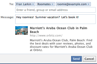 And while ‘Send’ may not sound especially exciting given how long other sharing widgets have been around, this is yet another step in Facebook’s mission to reinvent email with their own “modern messaging system“, as CEO Mark Zuckerberg called it. One by one, they’re integrating easy ways to complete tasks that have traditionally been done over email. Today’s launch — sending links to friends — is obviously a huge one, and you can be sure they have others in the works. One other email-replacing feature I’ve heard about (though I’m not sure they’re still working on it): a way to send a structured poll to a subset of your friends.