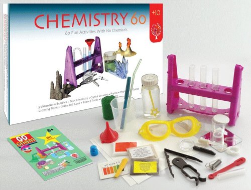 The set, called Chemistry 60, is a set that includes “60 fun activities with no chemicals.” You’re presumably supposed to raid the kitchen for vinegar and baking soda. Instead of selling parents the tools they need to have a blast with their kids, this chemistry set is basically a cop out that says “We, the ostensible science educators, don’t want to be responsible if your little hellions kill each other.”