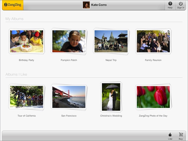Indeed ZangZing is a cut above other offerings, users have a streamlined homepage where they can view all the photo albums they have either created or Liked, with the options to share albums on Facebook and Twitter.