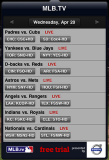 Baseball season has started, and tempted by an offer of free access to live games for the month of April, I downloaded the MLB.com At Bat app for the iPad.
