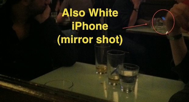 I tried to subtlety take a couple pictures with my own iPhone. A black one. But we were just out of range and the restaurant was just a little too dark to get a good shot. Then one of my friends abruptly stood up and walked over to the man with the mythical device.