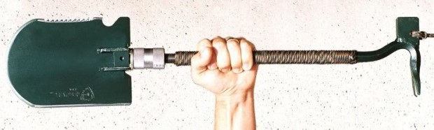 Sweet baby Grylls. This “Crovel” tool is absolutely monstrous. Its patent-pending hardened steel shape is alternately sharp, grippy, heavy, and jagged. The rope grip even detaches to form… you know, rope.
