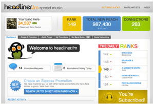 So, today, SoundCloud is announcing a partnership with Headliner.fm, a realtime social media recommendation exchange for artists and bands. Headliner’s exchange platform enables bands to reach their target audience by encouraging them to promote their fellow musicians by using a reward system of “Band Bucks”.
