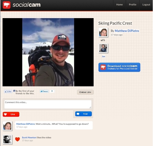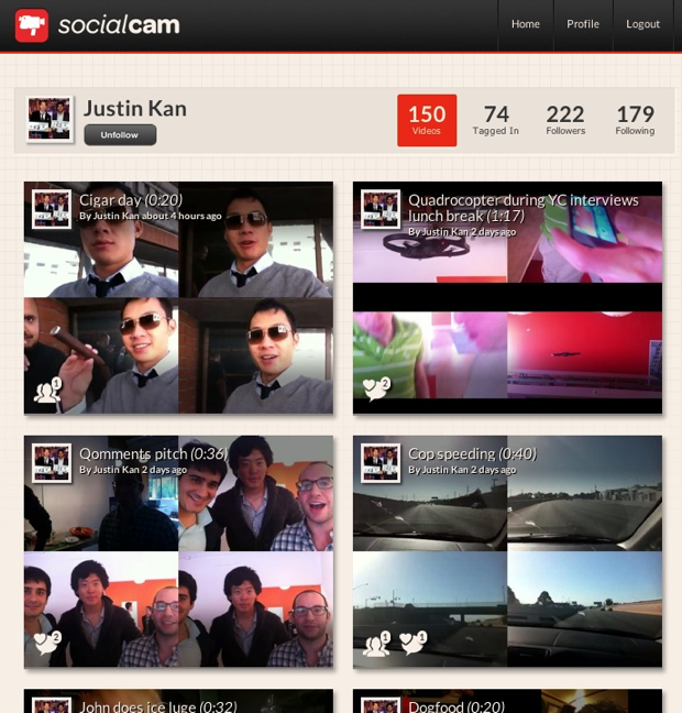 Now, in a sense Socialcam has had a website since it launched — every time you shared a Socialcam video via email or Twitter, you sent out a link to a landing page with your video embedded. You could retweet or share that page on Facebook, but that was it. There weren’t profile pages, so you couldn’t browse through the other videos your friends had recorded, and you couldn’t see who was tagged in each video (one of Socialcam’s features is a quick way to tag your friends in clips).