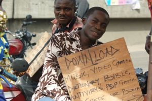 Simply put: Nigeria is a nation desperate for more entrepreneurship, but there are some significant challenges for local entrepreneurs and foreign investors. More on the good and the bad in a future post. A lot more. One story includes guys with machetes. But let’s talk about Nigeria’s tech appetite first. Like anyone else they lust for that new, new thing, and many of them go to a place called “Computer Village” to find it.