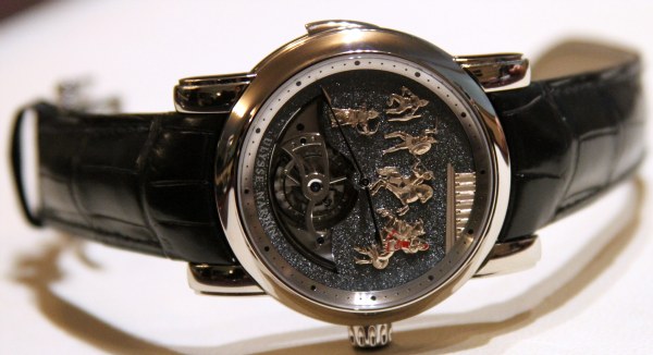 Woaw that’s a long name for a watch! It goes back to my classic statement, the longer the name of a watch, the more the brand wishes for you to take it seriously. I supposed the reason that the name of this watch is so long is because it is a new piece in an ongoing series of tourbillon minute repeater watches with automatons by Ulysse Nardin. The last two in the Minute Repeater Westminster Carillon Tourbillon Jaquemarts collection were the Circus and the Genghis Khan. Now the exploits of Alexander the Great join the family.