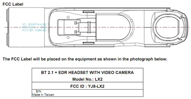 The LX2, as it’s called in the FCC docs, seems be a slightly redesigned unit, and appears to have an integrated USB port. Despite being labeled a Bluetooth 2.1 headset, it actually doesn’t look like a headset at all — more like a desktop-type unit. Presumably it will still work similarly to the first generation by streaming video through a smartphone’s data connection.