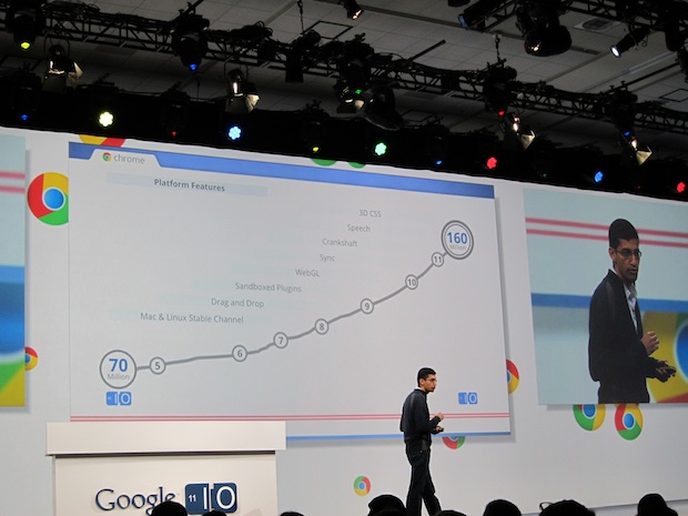 Pichai is back on stage. Three months ago launched the Chrome Web Store in the Chrome stable channel. In the first three months, over 17 million apps installed, 2x more time spent in app, 2.5x more transactions.