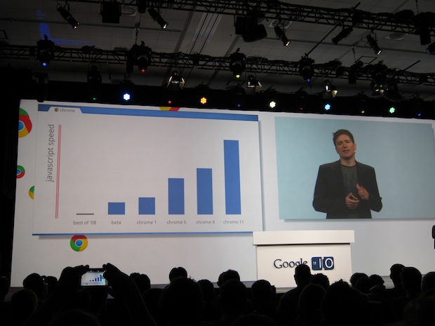 In the last twelve months have been releasing updates every six weeks. Just pushed Chrome 12. Many new APIs. Speed is also key. 12x improvement in Javascript improvement alone.
