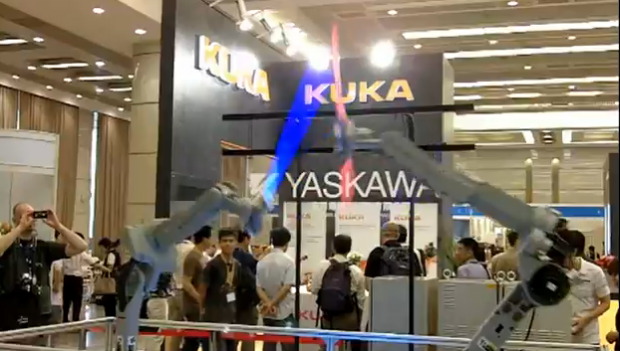 And what’s better than demonstrating the speed and flexibility of industrial robots by letting two of them publicly battle it out with lightsabers? Nothing, as you can see in the video embedded below:
