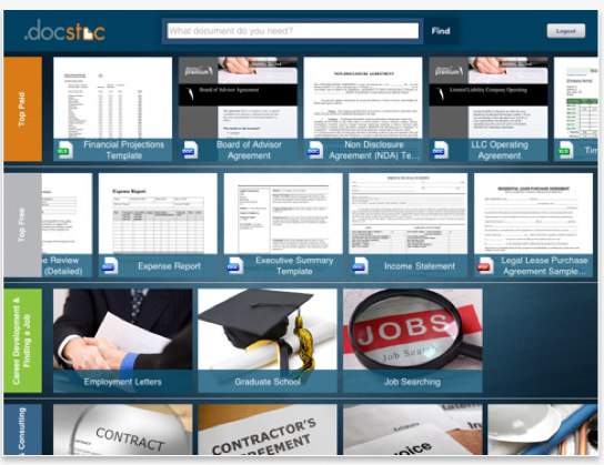 Docstoc, an online document sharing site that caters primarily to small businesses and professionals, is unveiling its first mobile app today with the launch of its iPad app today—Docstoc Premium.