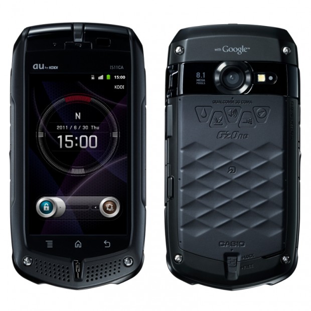 (3.6-inch IPS LCD with 480×800 resolution, 8MP CMOS camera, MSM8655 Snapdragon (1GHz) CPU, Android 2.3, rugged/water-proof body, Japan version of the G’zOne COMMANDO)