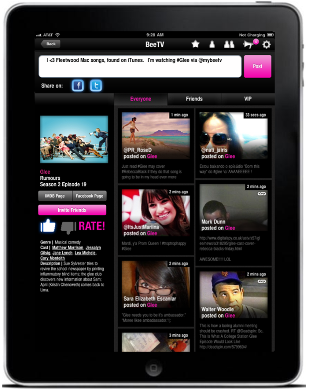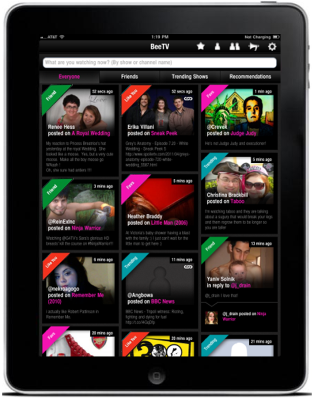 BeeTV lets users share ‘TV moments’ with friends and others in real-time, via an iPad app (iTunes link) that hits the App Store today. The app, which leverages the company’s existing recommendation technology, comes free of charge.
