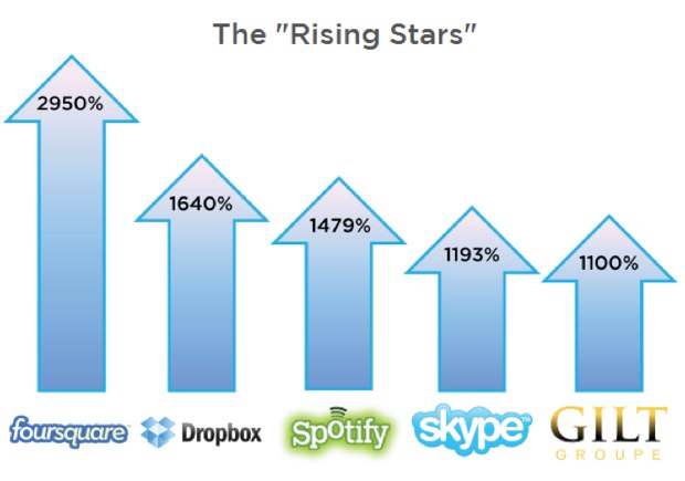 In March, SecondMarket launched a redesign which allowed members to more easily “watch” companies, which is similar to following news about those companies. Foursquare was the fastest rising star, with 2,950 percent growth in the number of participants “watching” the company. All of this interest propelled Foursquare to the No. 6 spot on the overall most-watched list. Other rising stars include Dropbox, Spotify, Skype and Gilt. Newcomers to the watch lists included Hulu, LivingSocial, Quora, and Square.