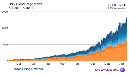On their staff blog, Karp has just shared that Tumblr did 250 million pageviews — just yesterday. Yes, they’re now doing roughly the same number of pageviews a day as they were doing in an entire month two years ago. The data, which is being directly measured by Quantcast, doesn’t lie. And it’s amazing.