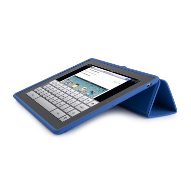 If you’re looking for more full-bodied protection, Speck also offers the Pixelskin HD Wrap, a rubbery, nubbin-textured soft case that surrounds your iPad in nearly the same material they used to use to Wacky Wall Walkers. The front of the case folds up into a triangle (Triangular solid? Triangular Cylinder?) like the Smart Cover and a small sticky patch along the backside allows it to stick to the glass.