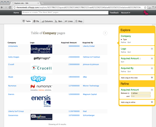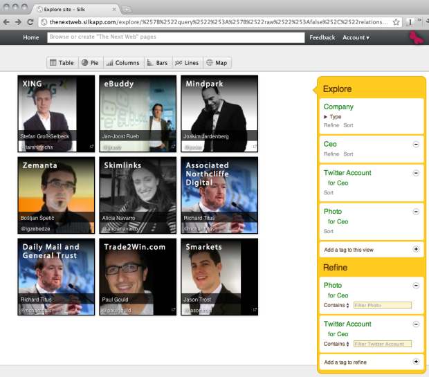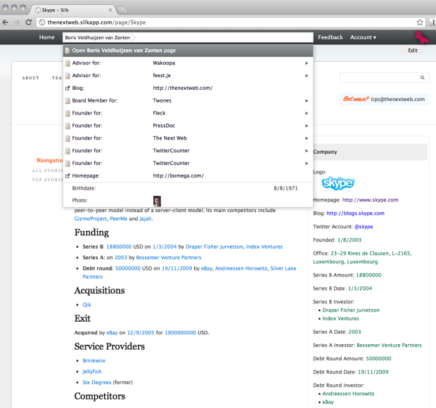 The demo sites I was shown this morning were based on a wealth of data abstracted from our own CrunchBase and Wikipedia, to give you an idea.