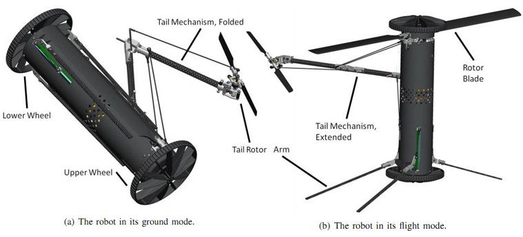 For now I guess we should congratulate Nikolaos Papanikolopoulos and his team at the University of Minnesota for creating a pretty cool little bot. Their design is solid, although right now there are two models, one that only flies and one that only rolls, since they haven’t worked out how to get the motor to power both drives.