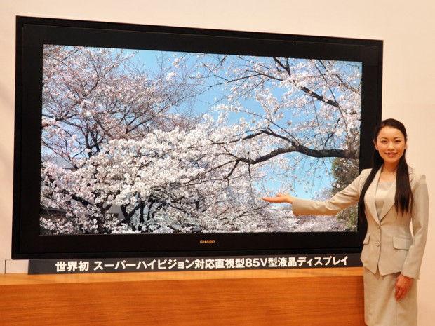 Can you imagine owning a TV with 16 times the resolution of HDTV (or, in other words, about the same resolution as IMAX)? That’s 7,680×4,320 pixels, and today Sharp (in cooperation with Japanese national TV broadcaster NHK) showed a 85-inch LCD TV boasting that spec, also known as Ultra HDTV or Super Hi-Vision.