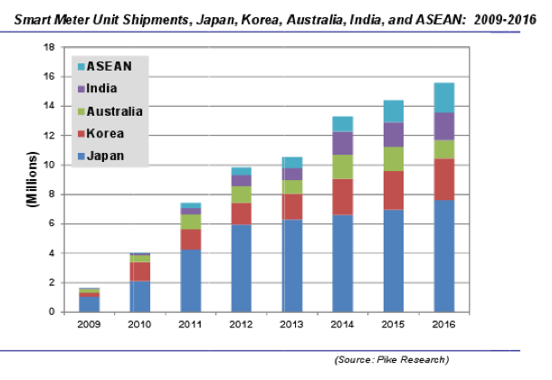 Graphic via Pike Research, from the Smart Meters in Asia Pacific, q1 2011 report