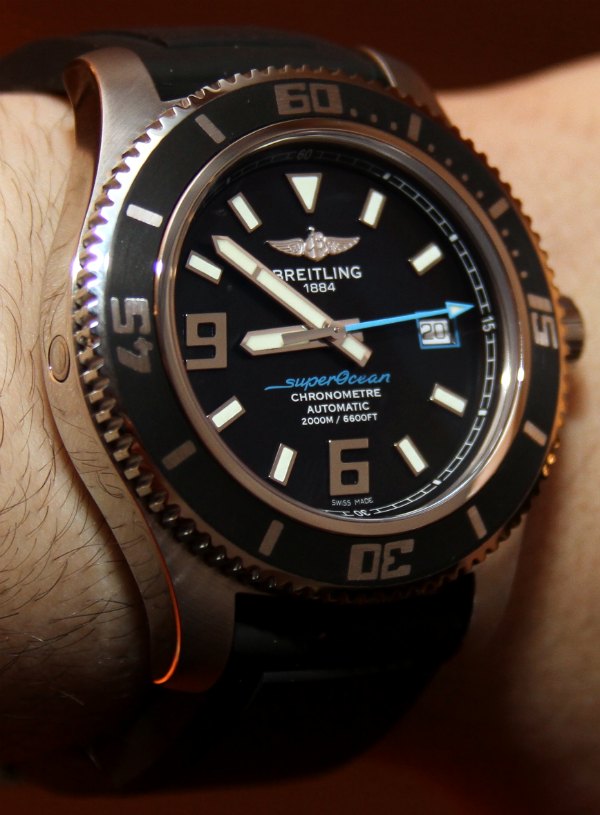 Last year Breitling came out with an entirely new Superocean watch. It featured a modern looking design in a smaller 42mm case. While a lot of people wanted a smaller Breitling diver, even more didn’t. So, just one year later, the Superocean II has been refreshed and enlarged. Now, for 2011, Breitling offers the Superocean 44. It comes in two versions: A three-hand, and a chronograph. There is also a GMT version but that comes in the 42mm wide case and will be discussed elsewhere.