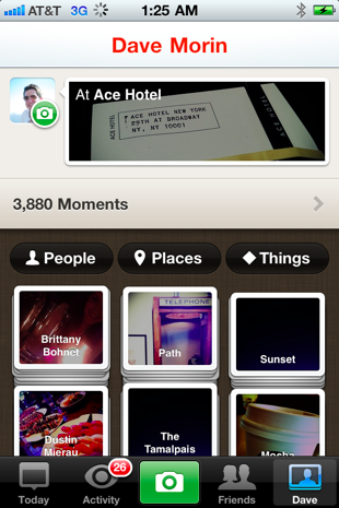 The feature is probably best described as a combination of Path’s core photo sharing experience and Facebook Places. Up until now it’s always been possible to tag your shared Path photos with people, places, and things. But there’s never been a way to actually browse through these. Now you’ll be able to browse through albums sorted by tag, each of which is called a Stack.