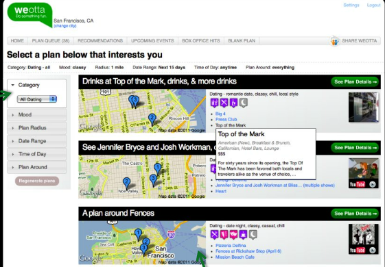 Q: I find this exciting.. a lot of traditional media falls short of being able to do this. Big question for most people, it’s date night, what am I going to do. Inevitably, if I’m single this is great. If I’m going on a date how does it know what my date is interested in?