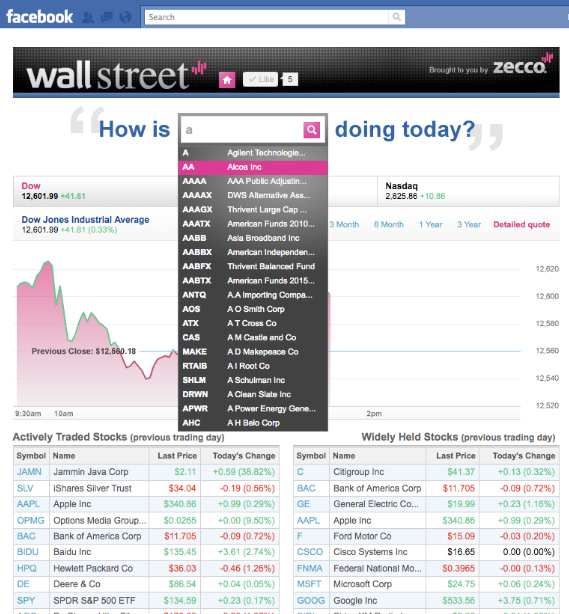 Beyond trading specific stocks, say that you want to search for wider market trends, Zecco’s app allows you to not only get free quotes and charts on any number of stocks or ETFs, but also lists of the previous day’s most actively and widely-held stocks, so that you can see how risky or safe a stock is compared to others in the market. The app looks great and seems very easy to use. It may take some time for people to get used to the idea of making stock trades on Facebook, considering many people tend not to use the social networking site for financial services, but I think it’s pretty neat that stock trading and free market data has finally come to Facebook — now I can stalk ex-girlfriends and trade my ETFs in one fell swoop. Now, that is something worth writing home about.