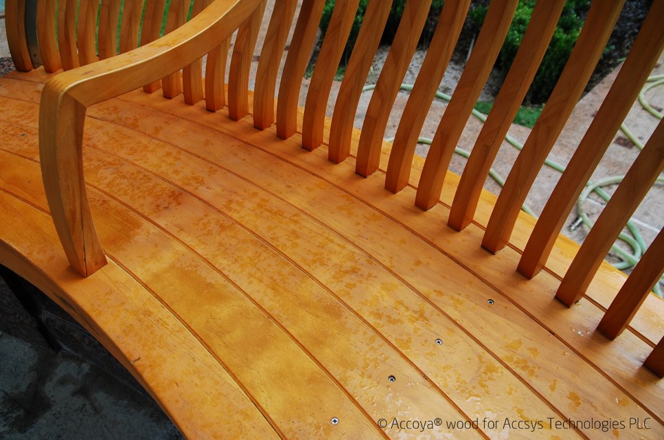 Accoya could be used in place of pressure-treated wood, although Ayala said the company sees itself as more competitive with tropical hardwoods such as teak and ipe. According to the company, Accoya wood requires less maintenance than its tropical counterparts, and comes with a 50-year warranty for wood used above ground.