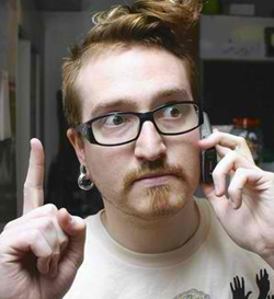 “Reed is hard to miss in a room. His hipster look includes an often-changing and often-wild hair style — from a mohawk to a flipped-up front like Jim Carrey’s in “Ace Ventura: Pet Detective.” He wears thick, rectangular glasses and gauge earrings, which make the wearer’s lobes expand. On his blog, he declares himself “probably the coolest guy ever.”