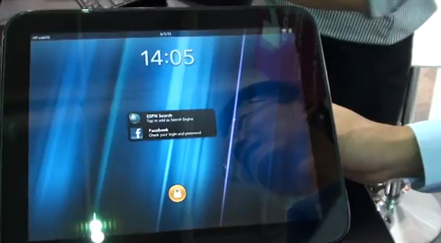 HP! SanDisk just crashed your party! Deep in the seedy show that is Computex Taipei, SanDisk is showing off one of its latest partner devices. Yep, they have a fully functional HP Touchpad.