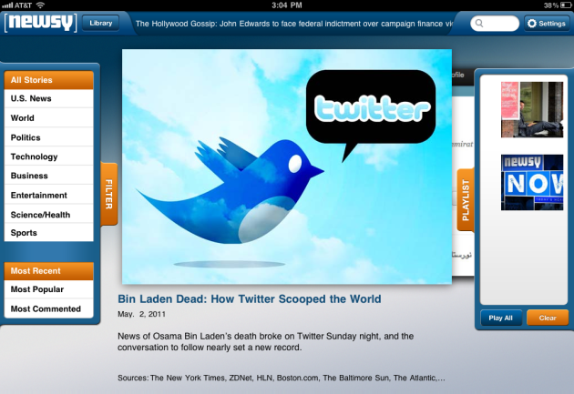 News junkie? Smart enough to realize you should check multiple sources covering the same news item to absorb as much information about the topic at hand as you possible can? iPad owner, by any chance? If you’re like me and that results in three ‘checks’, you definitely need to give the new iPad app from Newsy a whirl.