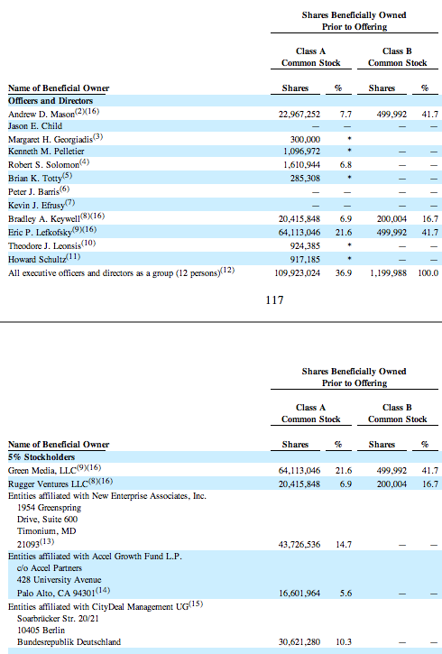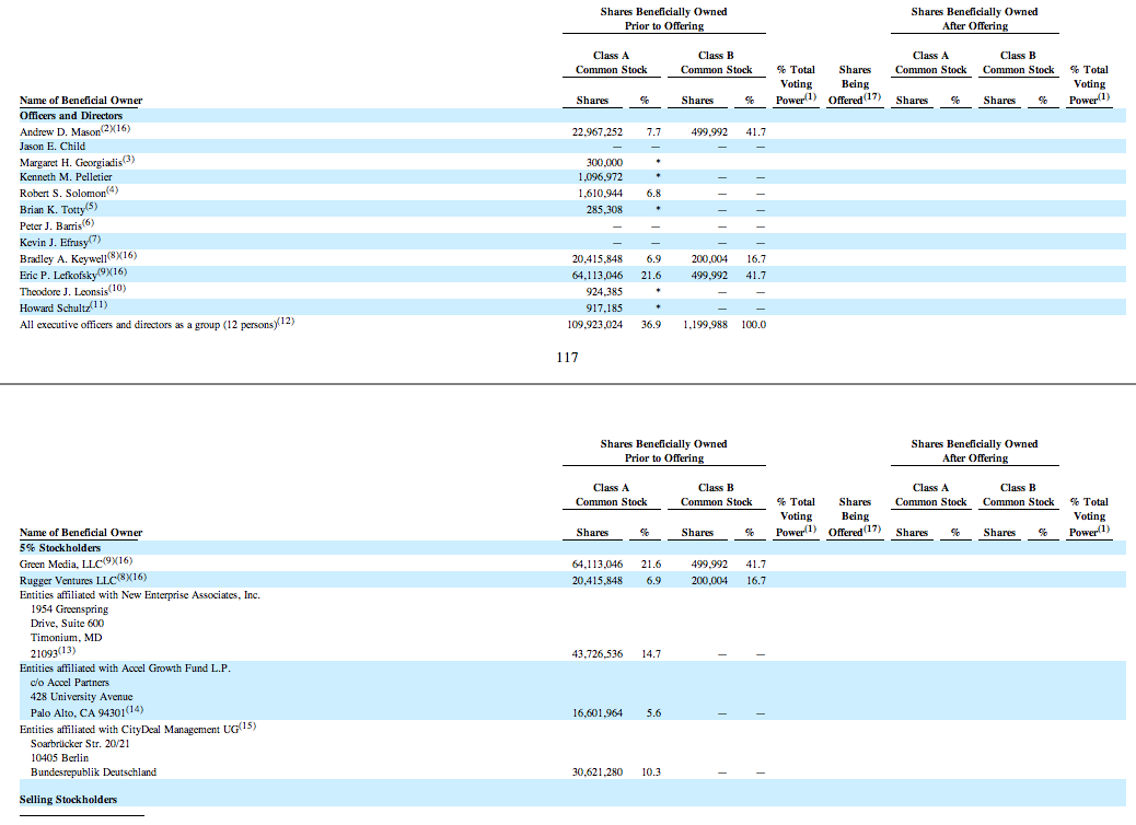 Both Lefkofsky and Mason have 41.7% of Class B shares.