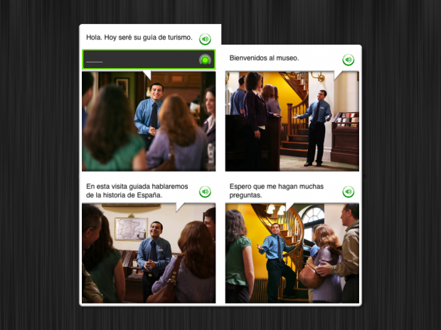 On a PC, you can really immerse yourself in a lesson, but on the iPad, most people switch back and forth from applications pretty regularly – what Mr. Fulkerson referred to as iPad ADD. For that reason, the Rosetta Stone TOTALe Companion app remains on the page you last visited once you close the application, whereas the desktop app always sends you back to the home page. A few other tweaks were made to the desktop app, as well, to get as much out of the iPad’s functionality as possible. For example, you swipe side to side to access new tracks (mini lessons) and instead of hovering over an image to zoom (like on the desktop app), iPad app users can touch to enlarge, and drag to zoom with smaller images.