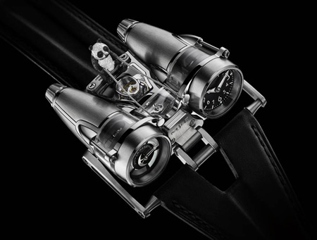 The MB&F MH4 looks like a pair of jet engines roaring off your wrist and costs about as much as the fuel needed to power one of those jet engines for a cross-country flight. However, the HM4 Only Watch limited edition costs even more (provided you can take part in the auction) and features a tiny removable panda cast in gold.