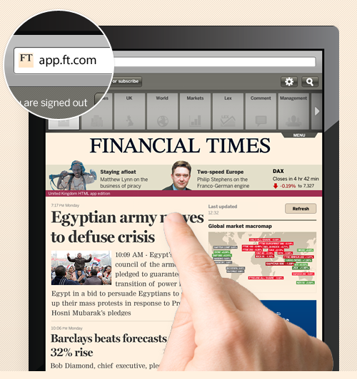 The Financial Times would rather not have Apple take a 30 percent cut of in-app subscriptions for its iOS publications, and has launched a HTML5 Web app that enables readers to access content across tablets and smartphones.