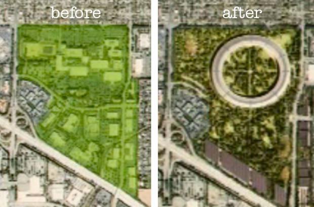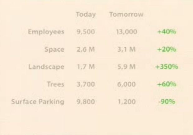- Jobs is planning on transforming an area that’s 20% landscaping to 80% landscaping by putting most of the building’s parking underground.