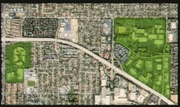 Jobs began the presentation referring to the fact that Apple is growing “like a weed,” and that its current campus at D’Anza and the 280 isn’t enough — fitting only about 2,800 people. Apple currently rents buildings to house its other 6,700 employees in the area. The new building will augment the current campus.