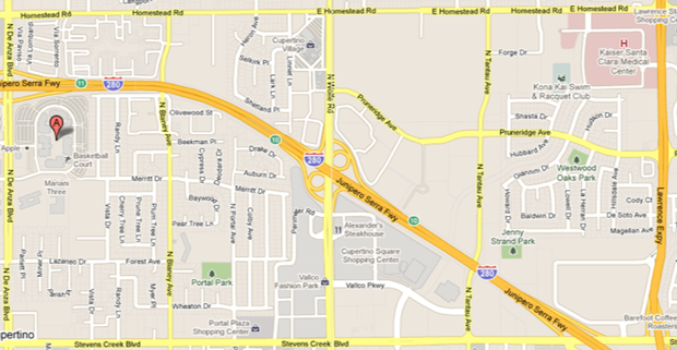 After having a banner WWDC start yesterday, Apple founder and CEO Steve Jobs humbly presented his idea for a new Apple campus at the Cupertino City Council today. Jobs wants to build one building that will hold 12,000 Apple employees on a former Hewlett-Packard property in the area between Tantau North Wolfe, Homestead and the 280 freeway.”It’s a little like a spaceship landed,” Jobs says. No kidding.