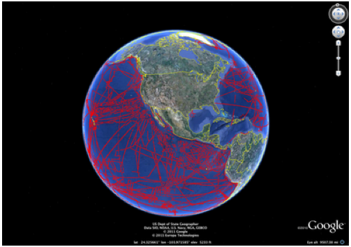 Getting in the spirit, Google Earth and about a dozen research labs paired their data, talents and technology to create high res maps of seafloor terrain. Columbia University’s Lamont-Doherty Earth Observatory led the charge contributing its Global Multi-Resolution Topography (GMRT) Synthesis and some 20 years worth of data from 500 ship cruises.