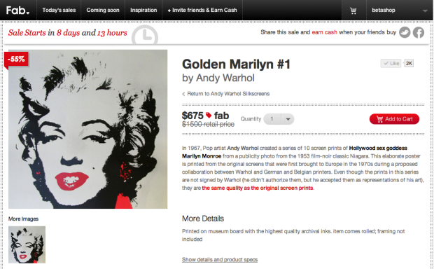 Fab.com membership is free but the startup says numbers are restricted in order to maintain “exceptional prices” for design products in a range of categories including furniture, home accessories, technology, lighting, art and toys.