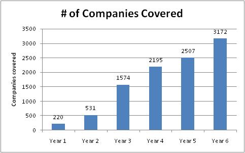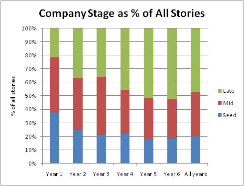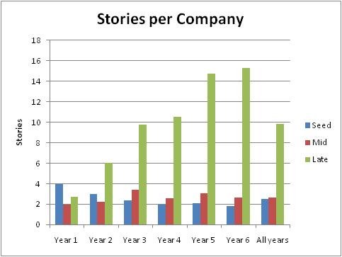 In Year One, this ratio was 4 stories per seed-stage vs. 3 stories per late-stage company.