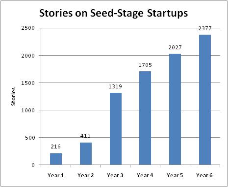 TechCrunch’s growth has certainly helped seed-stage startups. They were covered ten times more last year than in TechCrunch’s first year.
