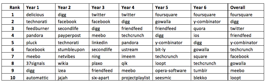 5. Foursquare, Digg, and Twitter are the most covered mid-stage companies