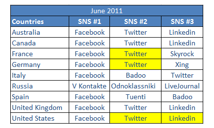 Also worth noting: Twitter and LinkedIn appear to be on the rise in the United States, Canada Australia and big parts of Europe (UK, France and Germany in particular).
